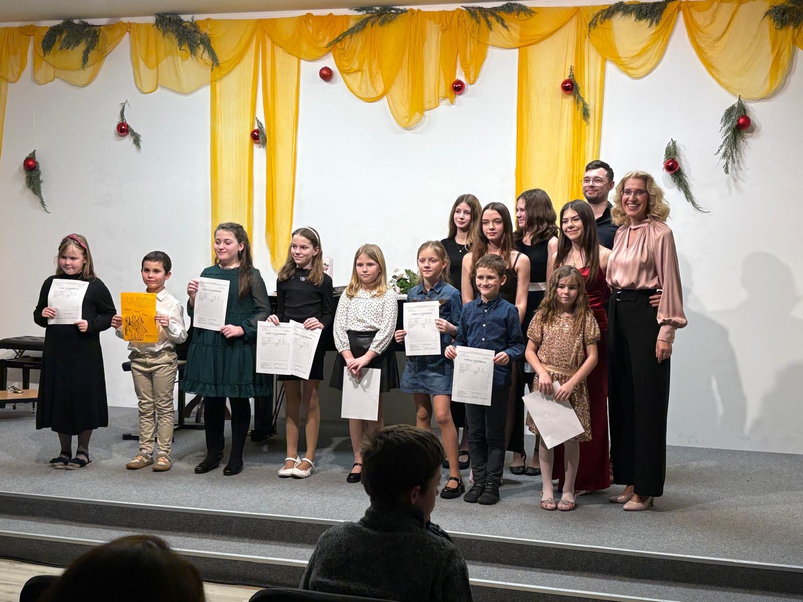 Na závěr koncertu děti dostaly pololetní vysvědčení. Děkujeme za krásné výkony, pedagogům za přípravu a rodičům za přízeň.