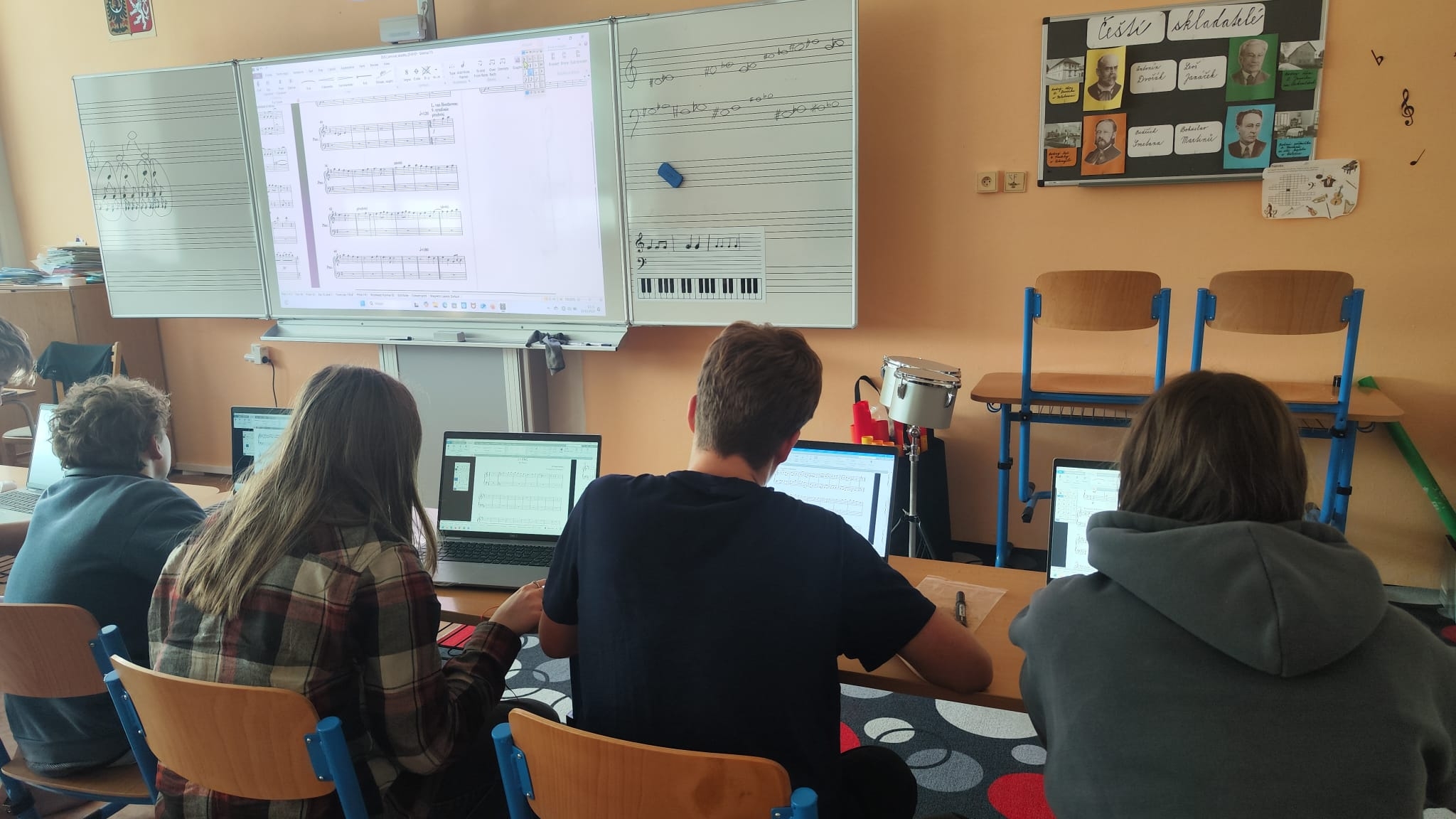 Přiblížit tradiční i moderní způsob tvoření hudby je cílem skladatelského kurzu pod vedením zkušeného skladatele MgA. Jiřího Mottla. Práce u klavíru, v notačním programu nebo s tužkou a papírem podporuje v rámci šablony Inovativního vzdělávání OP JAK II tvořivý potenciál žáků. Mladí skladatelé projevují velkou invenci, těšíme se na jejich skladatelská dílka!